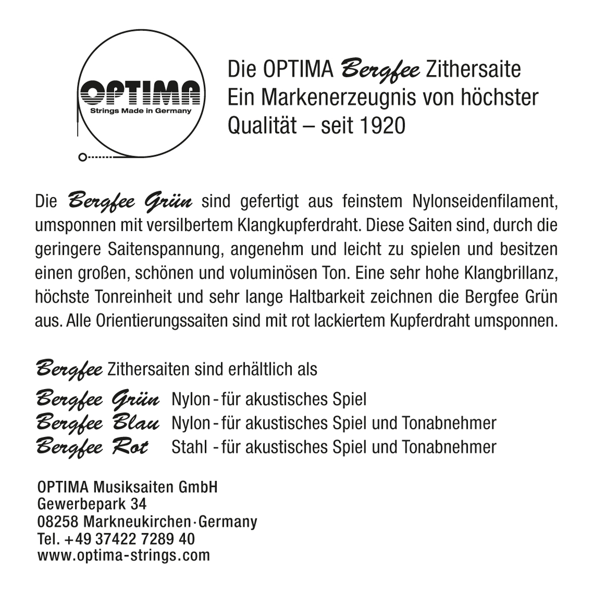 Produktinformationen "Harfenzither BERGFEE Nylon Grün, Bass f 15"